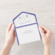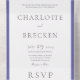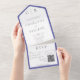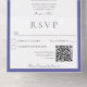 Invitation Tout En Un Périwinkle et monogramme blanc Code QR minimal