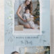 Elégant design de vacances moderne avec votre photo de gardien dans un modèle découpé en arc avec bordure blanche opaque, abstraite aquarelle style bleu clair et blanc verdure d'hiver et étincelles de neige blanche sur l'effet d'aquarelle bleu pastel arrière - plan. Inclut les champs de texte modifiables et les modèles photo sur l'avant et les panneaux.