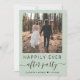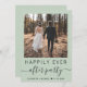 Elégant salon vert sage ou faire-part mariage privé et invitation à la réception tout-en-un de mariage. Le devant présente votre photo, "Happily Ever After Party" dans un mélange de typographie simple et d'un script chic avec des swashes, et vos noms et date de mariage ou de réception réunis par un coeur. Au verso, personnalisez vos détails, entrez votre adresse de site Web mariage pour créer un code QR que les invités peuvent scanner pour voir vos photos mariages, tous les détails et à RSVP en ligne, et ajoutez vos noms dans un script signature.