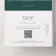 Un design moderne et romantique tendance d'humeur dans un vert émeraude foncé orné d'accents botaniques et calligraphie. Suivez le guide ci-dessus pour remplacer les détails personnels du mariage, y compris votre photo préférée. Un faire-part de mariage tout-en-un qui comprend une carte rsvp avec une option pour scanner le code QR, et/ou visiter votre site Web mariage.