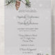 Découvrez la magie d'un merveilleux pays d'hiver avec cette superbe faire-part de mariage All-in-One, soigneusement conçue pour incarner l'élégance et le charme de votre journée spéciale. Laissez le charme des branches de pins, des cônes de pins, des saints et des chutes de neige tisser l'histoire de votre amour dans une tapisserie magique qui laissera une marque indélébile sur le coeur de tous ceux qui le reçoivent. Les invitations de mariage tout-en-un sont à la fois belles et pratiques en combinant le faire-part de mariage avec une carte postale RSVP perforée facile à enlever. Ils sont aussi rapides et faciles à préparer pour l'envoi. Adressez-vous simplement à l'invitation, pliez le rabat arrière et scellez avec les autocollants clairs inclus. Une fois que vos invités reçoivent l'invitation préadressée, ils arrachent simplement la carte perforée RSVP et la déposez dans le courrier.