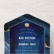 PixDezines triple moderne avec déchirure rsvp Bar Mitzvah. Aquarelle Agate en ardoise foncée bleu et noir accentué avec veines faux or. do-it-yourself pour tout événement, supprimez simplement les calques inutilisés. Notre design dynamique vous permet de modifier tous les éléments.