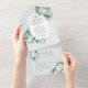 Invitation Tout En Un PixDezines Hiver H2 Fleurs Elégant Bleu Blanc
