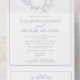 Invitation Tout En Un QR Code Dusty Blue Leafy Crest Monogram Mariage