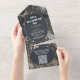 Invitation Tout En Un QR Code Elegant Mariage céleste d'or argent