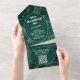 Invitation Tout En Un QR Code Emerald Green Gold CelestiMariage