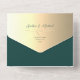 Célébrez votre amour dans le style avec cette élégante faire-part de mariage tout-en-un vert émeraude et or. Ce design moderne sceau-and-send présente un coeur de cordes d'or minimaliste, une typographie élégante et un cadre émeraude riche. Inclut un code QR pour faciliter RSVP et les détails de votre site Web mariage personnalisé. Parfait pour les couples qui veulent une invitation chic, écologique et sans enveloppe qui impressionne les clients par la beauté et la commodité.