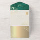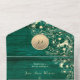 Elegant emerald green rustic barn wood all-in-one wedding invitation with gold floral artwork, romantic string lights, and personalized monogram. This invitation folds into its own envelope and features a convenient QR code for RSVP and your wedding website. The deep emerald wood background paired with glowing gold flowers and soft string lights creates a warm, elegant rustic look — perfect for barn, fall, or evening weddings. A beautiful blend of countryside charm and modern sophistication.