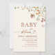 Fêtez l'arrivée d'un nouveau lot de joie avec un beau baby shower thématique Baby in Bloom. Rejoignez-nous pour un après-midi rempli d'amour et de bonheur alors que nous honorons les futurs parents. L'invitation comporte une étonnante terre cuite - texte orange brûlé, accentué par un éventail de fleurs sauvages dynamiques.