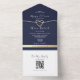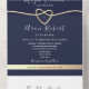 Invitation Tout En Un QR Code Gold et Mariage bleu marine