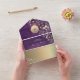 Romantic purple rustic wood all-in-one wedding invitation with elegant gold floral design, glowing string lights, and personalized monogram. This modern yet rustic invitation folds into its own envelope and includes a built-in QR code for RSVP and your wedding website. The deep purple wood background and golden floral details create a luxurious, moody vibe — perfect for fall, barn, or evening weddings. Ideal for couples who want a blend of rustic charm and sophisticated elegance.