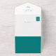 Fêtez votre grande journée avec cette élégante faire-part de mariage tout-en-un turquoise et doré. Le design moderne comprend un coeur de corde or sur un arrière - plan turquoise profond avec un texte blanc élégant. Ce sceau pratique et l'invitation d'envoi comprennent une carte RSVP avec code QR pour des réponses en ligne faciles et de l'espace pour votre site Web mariage. Aucune enveloppe séparée n'est nécessaire, ce qui la rend à la fois pratique et écologique. Idéal pour les couples qui souhaitent passer une journée de mariage moderne, chic et sans stress.