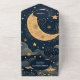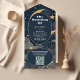 Invitation Tout En Un QR CodeMariage céleste d'or bleu nuit