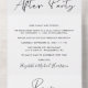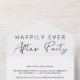 Faire-part de mariage intime ou d'élopement élégant combiné à une invitation à une réception après le mariage. "Happily Ever After Party" est écrit dans un mélange de typographie simple et d'un script moderne. Une carte postale RSVP détachable permet une réponse pratique et écologique sans enveloppe de la part de vos invités.