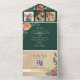 Découvrez une romance intemporelle avec cette élégante faire-part de mariage tout-en-un vert émeraude et fleurie. Avec ses fleurs d'aquarelle luxuriantes en rose et pêche, ses accents floraux dorés et son design sophistiqué, cette invitation écologique conviendra parfaitement aux mariages de automne. Le format tout-en-un pratique signifie qu'aucune enveloppe n'est nécessaire, simplement plier, sceller et envoyer. Customisez avec vos photos, texte et détails RSVP pour une célébration magnifique et durable.