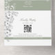 Raffinée et romantique, cette faire-part de mariage verte tout-en-un présente des illustrations florales blanches complexes avec de l'espace pour un monogramme de couple, trois photos personnalisées, et un code QR pour les RSVP sans effort. Le design botanique sophistiqué et la palette de couleurs douces en font l'endroit idéal pour les mariages de printemps ou de jardin. Aucune enveloppe nécessaire : plier, sceller et envoyer facilement.