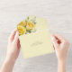 Planifier votre mariage de rêve commence par l'invitation parfaite. Notre faire-part de mariage All-in-One est conçue pour capturer le romantisme et l'élégance de votre journée spéciale. Avec des bouquets de délicates roses jaunes mêlées à l'haleine du bébé, cette invitation donne le ton d'une fête remplie d'amour et de joie. Les invitations de mariage tout-en-un sont à la fois belles et pratiques en combinant le faire-part de mariage avec une carte postale RSVP perforée facile à enlever. Ils sont aussi rapides et faciles à préparer pour l'envoi. Adressez-vous simplement à l'invitation, pliez le rabat arrière et scellez avec les autocollants clairs inclus. Une fois que vos invités reçoivent l'invitation préadressée, ils arrachent simplement la carte perforée RSVP et la déposez dans le courrier.