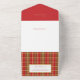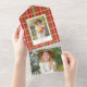 Invitation Tout En Un Rouge rustique chaud & Gold Plaid Photo