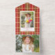 Montrez votre photo de famille chère dans ce charmant design rustique en plaid dans les tons chauds rouge et or. Comprend des champs de texte modifiables et un modèle photo supplémentaire.