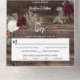 Ce mariage rustique d'hiver de Noël tout en une invitation avec RSVP est parfait pour un mariage de vacances élégant. Le design présente de belles fleurs d'aquarelle blanche et bordeaux avec une végétation de pins, de baies saintes et d'eucalyptus sur un arrière - plan de bois. Il s'agit d'une palette de couleurs parfaite pour un mariage d'hiver. Faites cette invitation vous-même en incluant vos noms et tous vos détails mariages. Pour plus de personnalisation, utilisez l'outil de conception avancée pour modifier ce modèle.