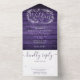 Invitation Tout En Un Russe Violet Script Monogramme Floral Mariage