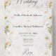 DISPONIBLE AVEC OU SANS CODE QR OU OPTIONS DE SÉLECTION DE DÎNER. Ce design présente un bel arrière - plan de marguerites blanches et jaunes sucrées. Le texte s'affiche sur une zone de texte blanc et transparent. Le dos continue l'arrière - plan marguerrier. Créé par Simply Farmhouse Press.