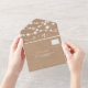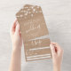 Un kraft brun rustique et des lumières clignotantes d'été blanc dans un faire-part de mariage de calligraphie avec rsvp, hébergement, détails, et plus d'infos. Avec un script moderne et tendance, ajoutez vos initiales.