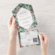 Invitation Tout En Un Rustique hiver Floral Pine Emerald QR Code