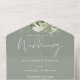 Le tout dans un faire-part de mariage vert sage avec verdure botanique, feuilles rustiques et typographie élégante. L'invitation comprend une carte RSVP perforée qui peut être adressée individuellement ou laissée vide pour que vous puissiez écrire à la main les coordonnées de votre invité. Conçu par Thisisnotme©