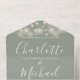 Le tout dans une faire-part de mariage avec de jolies lumières à cordes, un nom élégant de script signature et des initiales monogrammes sur un arrière - plan vert sage. L'invitation comprend une carte RSVP perforée qui peut être adressée individuellement ou laissée vide pour que vous puissiez écrire à la main les coordonnées de votre invité. Conçu par Thisisnotme©