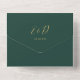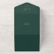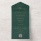 Le tout en un faire-part de mariage vert émeraude et or avec une typographie script de coeurs élégants et des initiales monogrammes. L'invitation comprend une carte RSVP perforée avec votre code QR mariage personnalisé. Conçu par Thisisnotme©