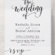 Invitation Tout En Un Script noir et blanc délicat Mariage simple