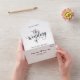 Cette élégante faire-part de mariage en noir et blanc conviendra parfaitement à une mariage moderne. Le design simple présente une élégante calligraphie noire sur un arrière - plan blanc propre.