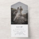 Invitation Tout En Un Script photo moderne RSVP Entree Sage Mariage vert