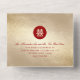 Rouge Minimaliste / Faux Gold Foil rond Cercle Double Bonheur Sur Une Couleur Rouge Solide / Faux Gold Foil Arrière - plan, Invitation Mariage Chinoise + Carte RSVP, Invitation Tout-en-un. Design simple à double bonheur dans l'écriture calligraphique moderne. Un design mariage asiatique élégant et classe pour le couple chinois moderne. Le double bonheur est un symbole de bonne chance très auspicieux et utilisé dans tous les mariages et célébrations orientaux traditionnels. La fausse couche arrière - plan d'image papier feuille d'or peut être supprimée. La couleur arrière - plan solide peut être changée en n'importe quelle couleur de votre choix. Vous pouvez facilement ajouter plus de texte / info / détails et/ou photos à l'avant et à l'arrière de ce produit. Plus de styles de police et de fonctionnalités d'édition disponibles dans la page de personnalisation du produit à l'aide de l'outil de conception. Conçu par fat*fa*tin. Facile à customiser avec votre propre texte, photo ou image. Pour des demandes personnalisées, veuillez contacter fat*fa*tin directement. Des frais personnalisés s'appliquent. ・ ・ ・ ・ ・ ・ ・ ・ ・ www.zazzle.com/fatfatin_blue_knot