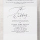 Simple Elegant Black on White Wedding Invitez un Mariage formel ou informel All in One Invitation. Script blanc et noir avec impressionnante calligraphie moderne. Jolie calligraphie.
