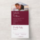 Invitation Tout En Un Simple Script Bourgogne Monogramme Mariage photo
