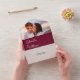 Le tout dans un faire-part de mariage avec votre photo, initiales monogrammes et élégante typographie moderne minimaliste sur un arrière - plan bordeaux. L'invitation comprend une carte RSVP perforée qui peut être adressée individuellement ou laissée en blanc pour que vous puissiez écrire à la main les coordonnées de votre invité. Conçu par Thisisnotme©