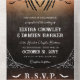 Halloween goth tout en un faire-part de mariage en noir et orange en détresse avec chauves-souris, toiles d'araignée et mains squelettes formant un coeur autour de votre initiale.