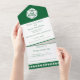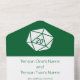 Apportez une touche de plaisir geek à votre événement avec cette carte tout-en-un et faire-part de mariage RSVP. À l'intérieur, vous trouverez un fond blanc à vingt côtés sur un arrière - plan vert riche au-dessus d'une section avec un exemple de texte qui peut être customisé pour votre journée spéciale. La partie inférieure de l'invitation est constituée d'une pièce amovible de taille carte postale qui contient un échantillon de texte RSVP placé au-dessus d'une bordure vert émeraude avec motif des d20 éparpillé dans le fond. À l'extérieur, une bordure semblable de dés à vingt côtés sur vert se trouve sous les zones où vous ajouteriez des timbres, des adresses standard et de retour pour l'invitation dans son ensemble et la section RSVP consignée. Le rabat utilisé pour plier et sceller la carte a un d20 unique sur un riche arrière - plan émeraude avec un échantillon d'initiales que vous pouvez customiser pour une touche personnelle finale qui montre votre amour pour le jeu de table et l'autre. N'oubliez pas de consulter le reste de l'ensemble Tabletop Chic in Green pour d'autres produits de coordination, y compris les étiquettes d'adresse de retour.