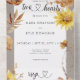 DISPONIBLE AVEC UN CODE QR OU AVEC OU SANS CHOIX DE DÎNER. Embarquez pour un voyage dans la chaleur de l'automne romantique avec notre belle invitation à l'automne. Imaginez une toile d'amour ornée des riches teintes terreuses de la saison. Un arrière - plan blanc immaculé vous accueille, vous accueillant avec une splendide aquarelle de fleurs d'automne. Des mamans rouillées et des tournesols dorés s'élancent gracieusement, créant une symphonie de chaleur. Le cadre taupe embrasse ce chef-d'oeuvre, ouvrant la voie à la célébration qui attend. L'agencement est une danse de couleurs — marron foncé, taupe réconfortant, blancs crémeux, et l'or vibrant des tournesols, le tout minutieusement peint dans un rêve aquarelle. Les fleurs sont éparpillées de manière décontractée et spirituelle autour de l'invitation, invoquant la beauté sans effort de la nature. Au coeur de ce havre fleuri se trouve les détails essentiels de la journée, présentés dans une élégante boîte blanche. Cette invitation est plus qu'un bout de papier ; c'est un aperçu de l'amour qui fleurit comme les fleurs d'automne représentées. Créé par Simply Farmhouse Press.