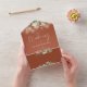 Le tout dans un faire-part de mariage avec de jolies lampes à cordes, une végétation botanique fleurie et une typographie élégante sur un arrière - plan en terre cuite. L'invitation comprend une carte RSVP perforée avec un code QR. Conçu par Thisisnotme©