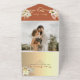 Rustique, élégant, moderne, boho en terre cuite tout-en-un faire-part de mariage avec coeur de corde en faux or, pampas herbe et image personnalisée du couple à l'arrière. Ajoutez votre photo, les détails du mariage et rsvp.