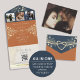 Elégant, moderne, bleu marine et terre cuite tout-en-un faire-part de mariage avec coeur de corde or, dentelle dorée fleurie et personnalisées quatre images du couple. Ajoutez vos 4 photos, votre site web et votre code QR - pour RSVP et plus d'infos.