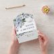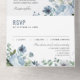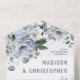 Élégante invitation à un mariage d'hiver fleuri et fleuri avec un bouquet de fleurs gris et bleu glacé et une végétation ondulée. Veuillez me contacter pour toute aide sur la personnalisation ou si vous avez besoin d'un autre produit avec ce design.