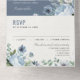 Élégante invitation à un mariage d'hiver fleuri et fleuri avec un bouquet de fleurs gris et bleu glacé et une végétation ondulée. Veuillez me contacter pour toute aide sur la personnalisation ou si vous avez besoin d'un autre produit avec ce design.