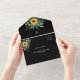 Un élégant arrière - plan noir décoré de tournesols aquarellés, de verdure d'eucalyptus. Personnalisez et ajoutez vos noms, monogrammes et détails mariages.