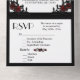 Elégant look de cadres de clôtures en fer et roses rouges foncé sur une invitation blanche avec script unique. Le retour RSVP a deux candélabres et livraison personnalisée au texte. Modifiez le texte pour ce dont vous avez besoin. Si vous avez besoin d'aide, envoyez-moi un message. Veuillez vérifier votre texte avant l'achat final