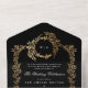 Invitation Tout En Un Tuxedo Black Gold Botanical Wreath Classic Mariage