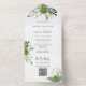 Invitation Tout En Un Vert Floral QR Code Élégant Monogramme Mariage